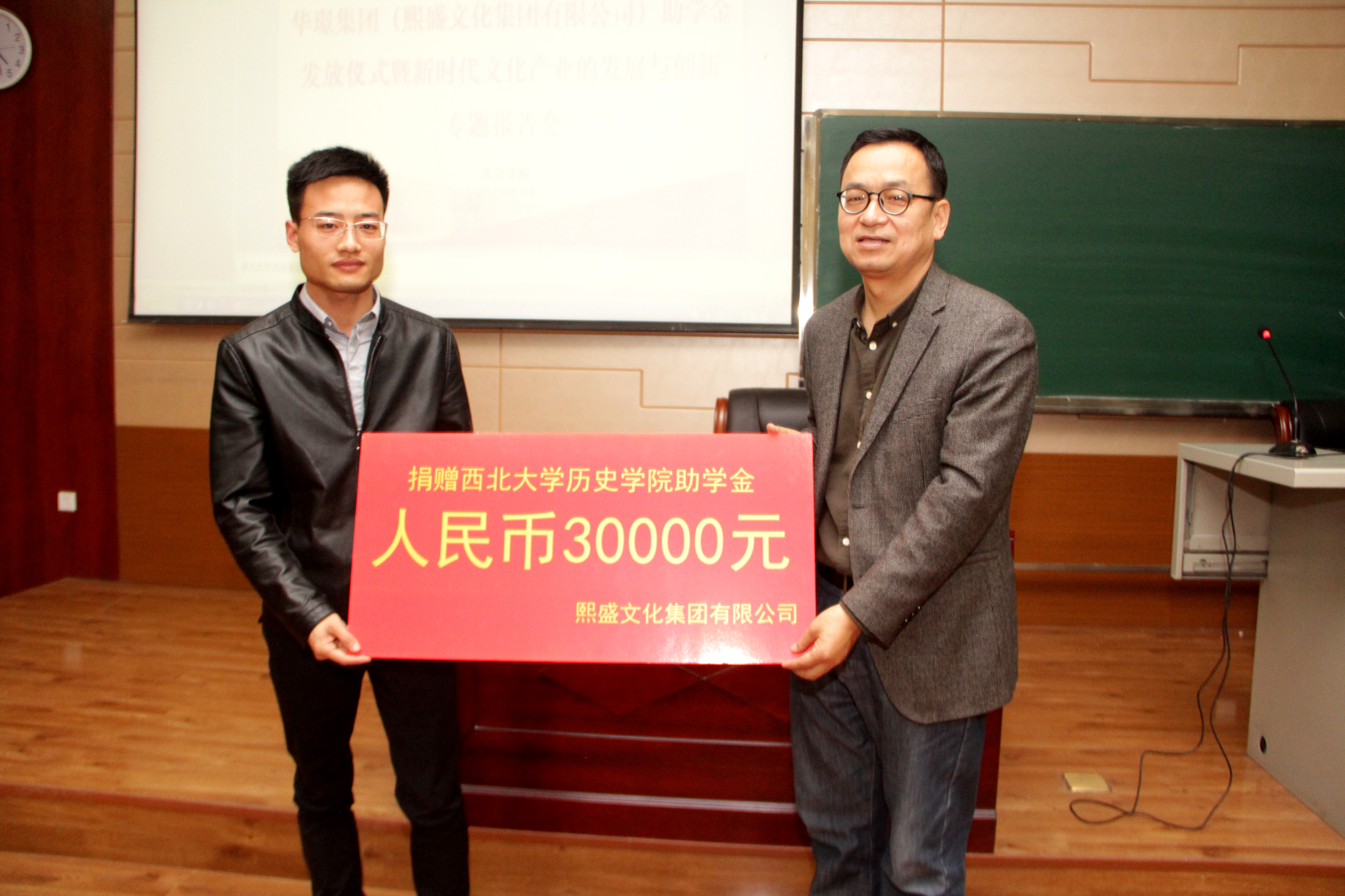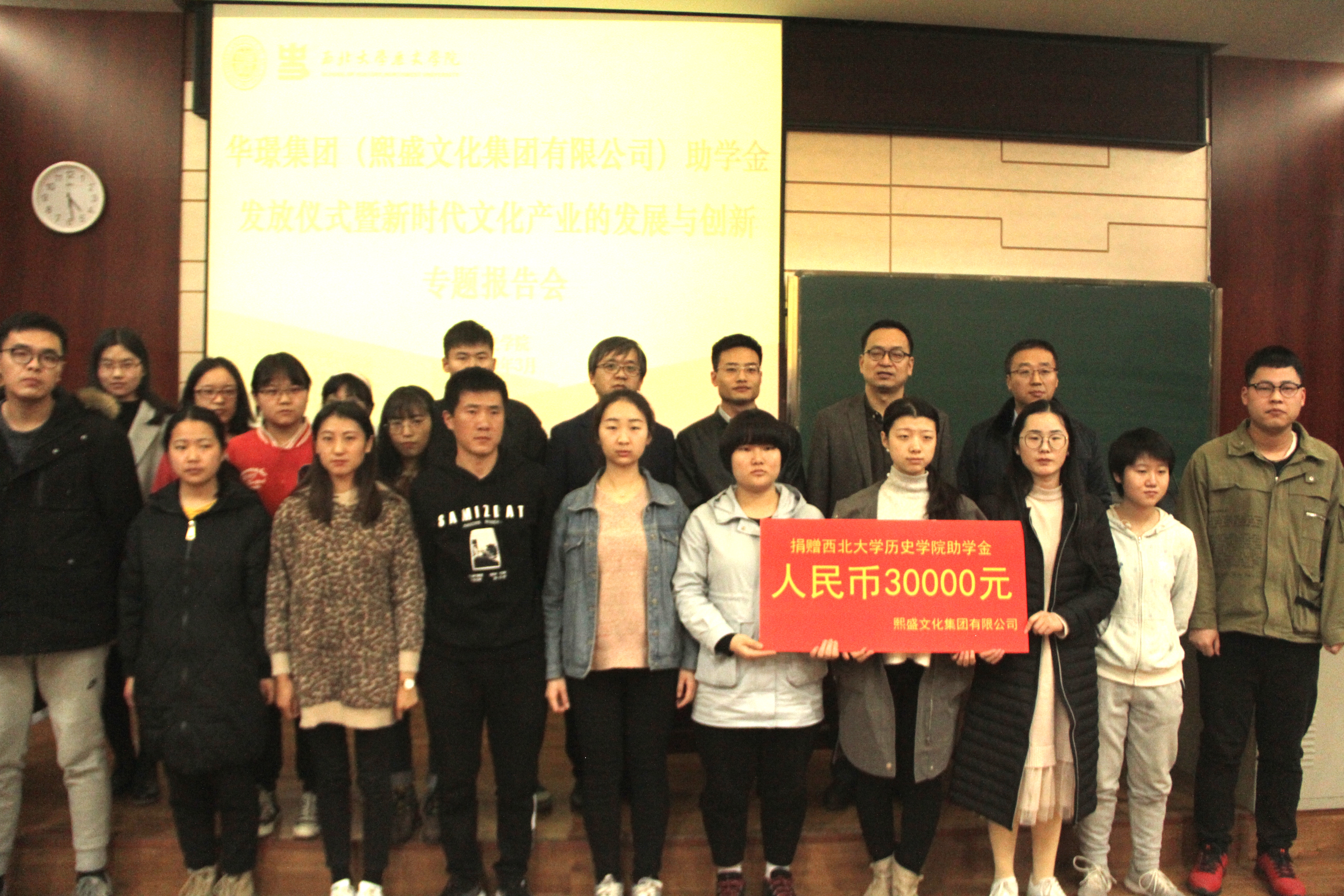 2019年3月6日下午,“熙盛创新创业助学金”发放仪式暨新时代文化产业的发展与创新专题报告会在太白校区8101成功举行。