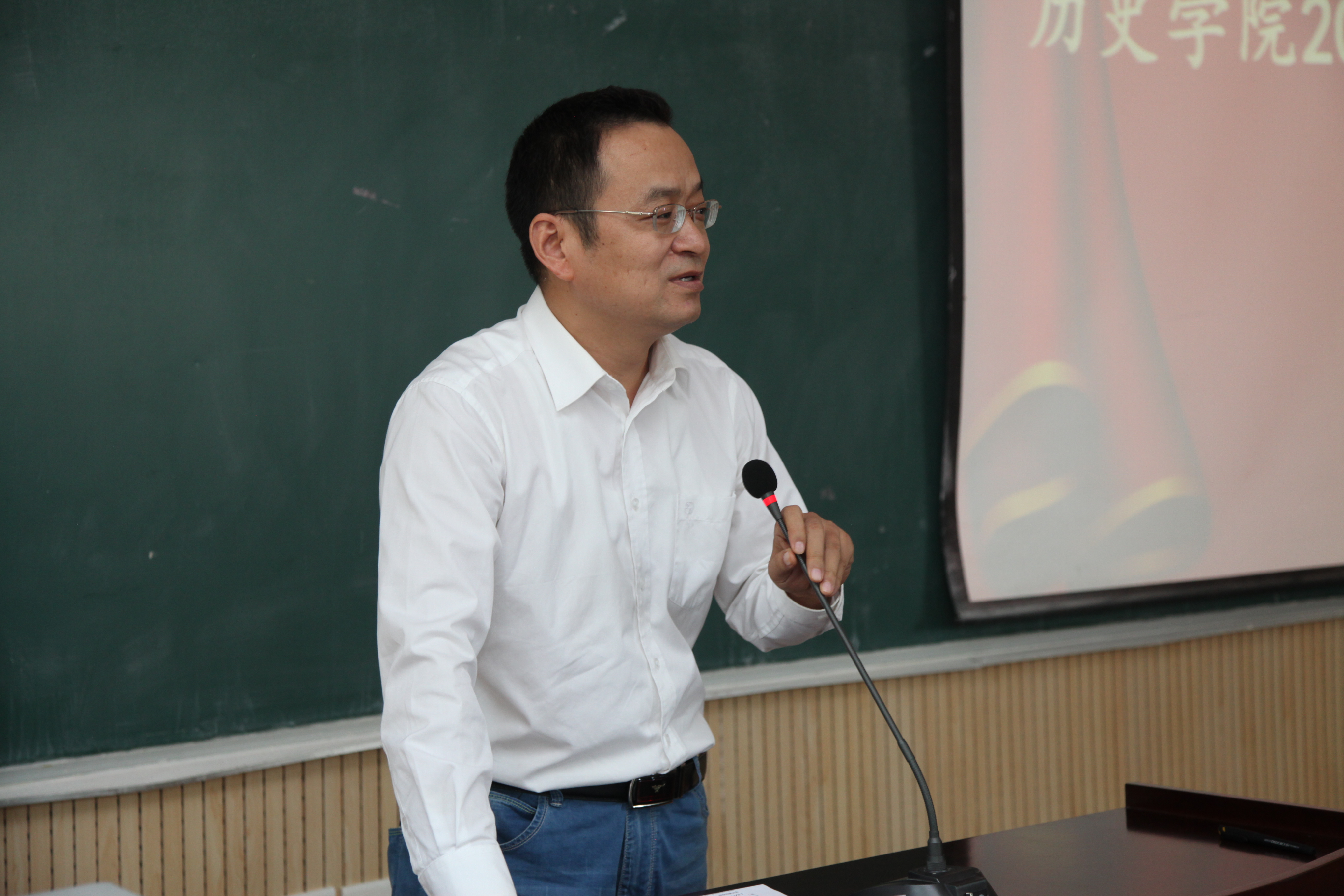 学院党委书记赵万峰致辞。赵书记用几组数据向同学们介绍了776net必赢官网的师资队伍、学生管理、学科发展等情况,展望了历史专业的发展前景,并对新生提出了几点要求。赵书记希望全体新生能够转换角色、调整心态,尽快适应大学生活,从而在西北大学的平台上促进自身在专业领域的长远发展。
