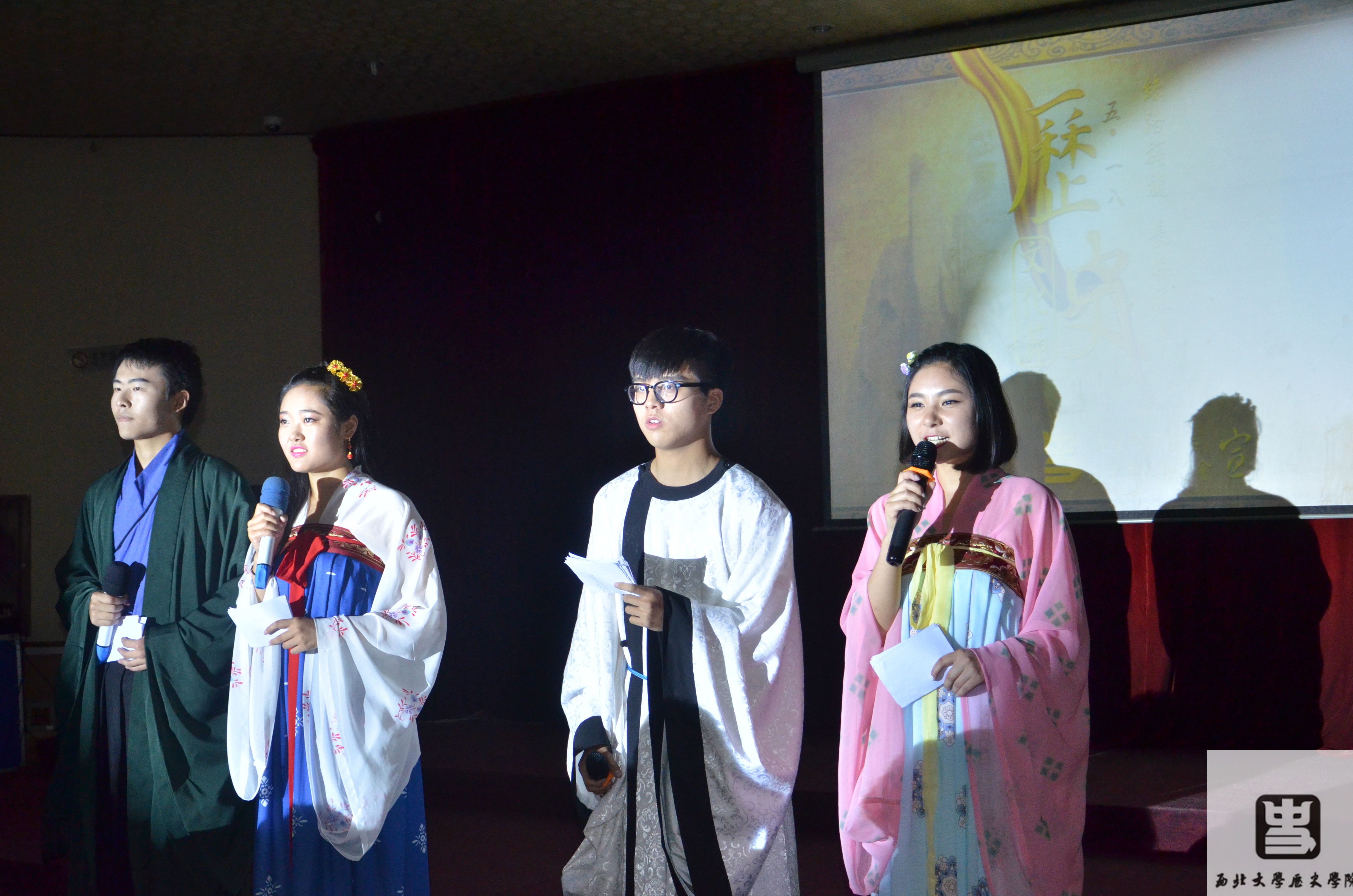 为庆祝2014622日,由中哈吉三国联合申报的丝绸之路长安天山廊道网成功申报世界文化遗产,我院此次特以丝路旖旎,长安风华为主题,举办5.18历史文化节。在掌声雷动中,5.18历史文化节闭幕晚会以一支古典舞开场,之后还有歌曲《丝路》、古筝表演《北方有佳人》、话剧《凿空西域》、新疆民歌弹唱、书韵、西域舞蹈串烧、唐长安情景剧、古筝表演《春江花月夜》、歌曲《龙文》、诗经吟诵、古典舞蹈《雅乐寻踪》等精彩节目,不断将晚会气氛推向高潮。最后,晚会在由西北大学776net必赢官网 爱渡志愿者团体集体演唱的《贞观长歌》中落下了帷幕。其中话剧《凿空西域》以张骞出使西域为背景,结合史料,加上同学们精湛的演技,真实有力地反应出西汉初期张骞为联合大月氏夹击匈奴而出使西域这一史称凿空西域的历史事件,赢得了观众的阵阵喝彩。表演期间,776net必赢官网还特地推出微信墙互动平台,加强了观众的参与度,为晚会增添了许多乐趣。