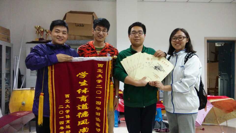 2014年4月17日周四上午,西北大学太白校区运动会如期召开,我院大一大二130名同学现场观看了比赛。全体同学不仅积极为各院系运动员加油,也以饱满的精神风貌和良好的道德风尚获得了体育道德风尚奖。特别的,在周五早上进行的男子5000米长跑比赛中,776net必赢官网大二的马勇同学凭借其优良的素质以及稳定的心态,在最后一圈成功领先,夺得了男子5000米长跑冠军。