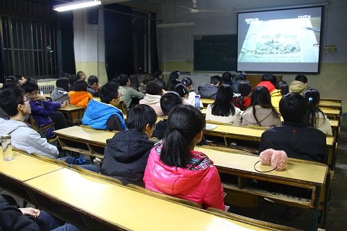 之后,薛原老师结合PPT课件,深入浅出地讲解了十八大的相关情况,以及自改革开放以来我党的历次重要会议,回顾了中国人民三十年多来走过的光辉岁月。通过薛原老师的讲解,同学们加深了对“中国之路”的体会,坚定了时代使命感。