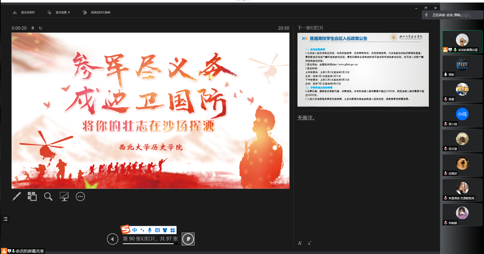 最后,余洪老师为同学们宣讲了大学生应征入伍的相关政策,介绍了参军入伍的优待政策与相关渠道,号召同学们参军尽义务、戍边卫国防。