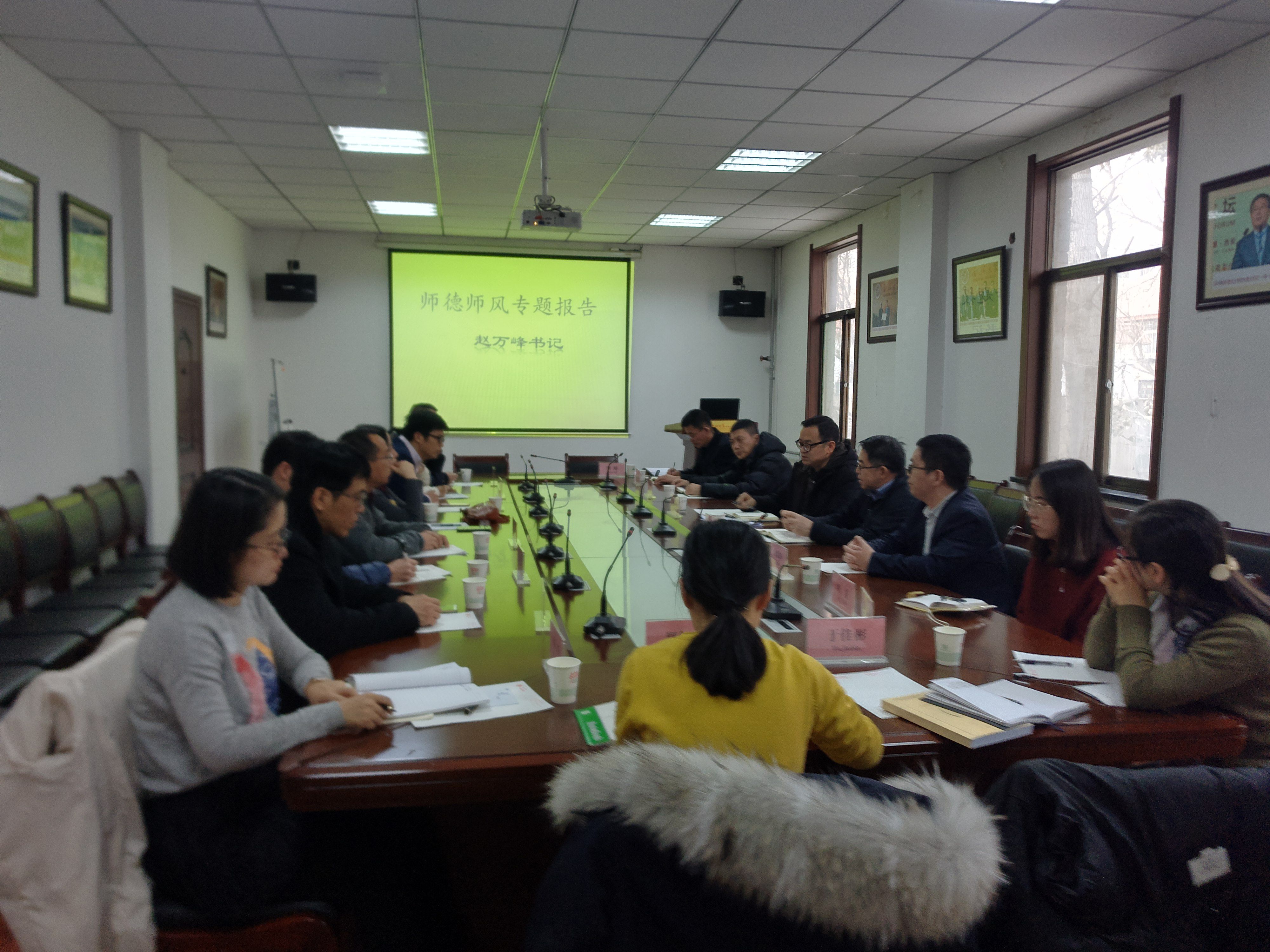 赵万峰强调,近几年高校中存在不少意识形态工作和师德师风建设的问题个案,相关问题在我们学校,在历史学科相关院所中也存在。这些问题的存在要求大学教师要加强自身意识形态建设,做到“学术研究无禁区,课堂讲授有纪律,公开言论守规矩”,并在平时科学研究、人才培养和公众及个人媒体平台发布言论时,时刻绷紧意识形态的弦,做到对自己负责,对学生负责。另一方面,响应中央关于“弘扬爱国主义精神,建功立业新时代”活动号召,各老师要加强师德师风建设,提高自身道德修养,投入为国家为人民奋斗的大潮中去,真正发挥好高校教师的道德引领作用。