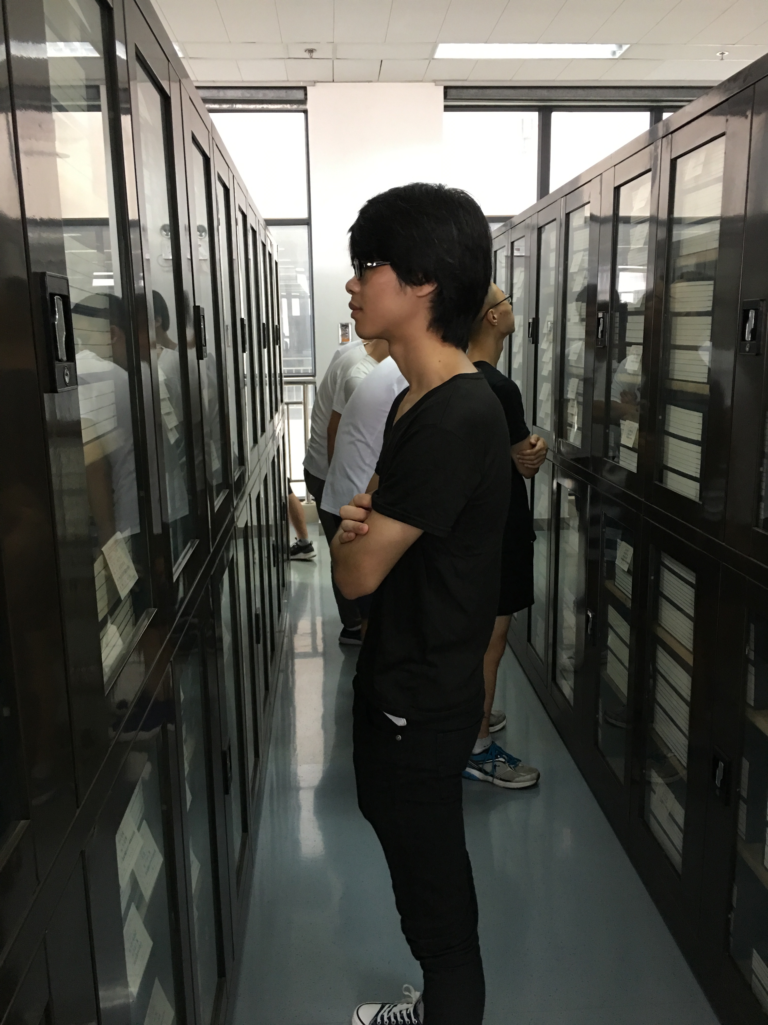 紧接着,师生走入普通库。首先映入眼帘的是装帧精美的《中华再造善本》,两位老师详细介绍了这套书编制的缘由,编纂体例以及所收书的范围,我也更加了解了课堂中所学“善本”的含义,也清楚了《中华再造善本》已经在一些公共图书馆代替底本出借,它既方便合理利用古籍,又大大减少了珍贵原件的磨损等一些相关知识。之后观摩了普通库所收藏的影印文渊阁《四库全书》、《四部丛刊》以及《丛书集成初编》等大型丛书,它们整齐的横放在樟木做的书架上,显得庄严而神圣,我从心底油然而生对历史文献的崇敬之心。
