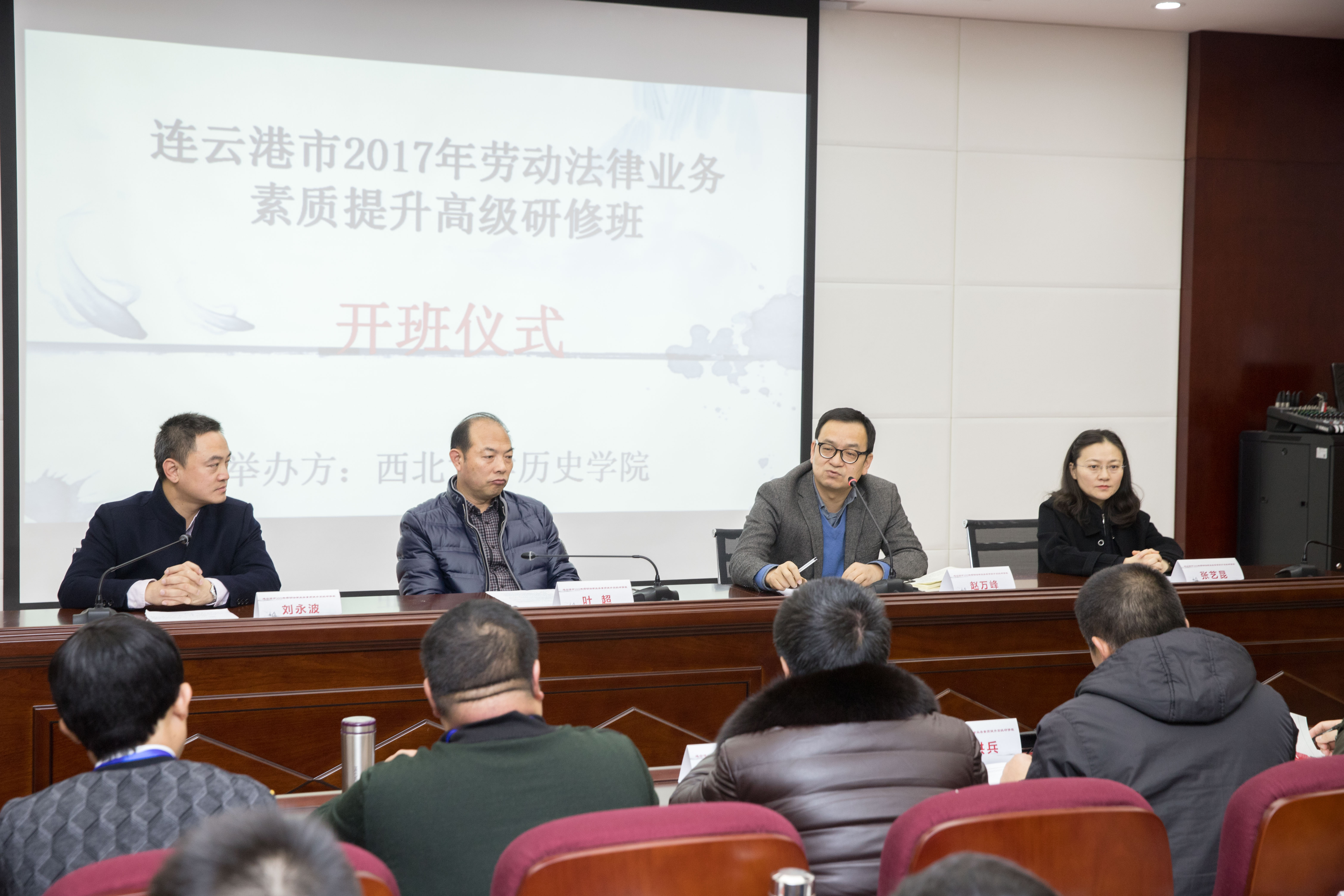 12月18日上午,由连云港市人社局与我校776net必赢官网共同举办的“连云港市2017年劳动法律业务素质提升”高级研修班在我校太白校区开班。与会人员由连云港市人力资源和社会保障局、劳动人事争议仲裁院和监察大队以及我校776net必赢官网负责人构成,江苏连云港市人社局和下辖各级政府单位的30余名参训领导干部参加开班仪式。