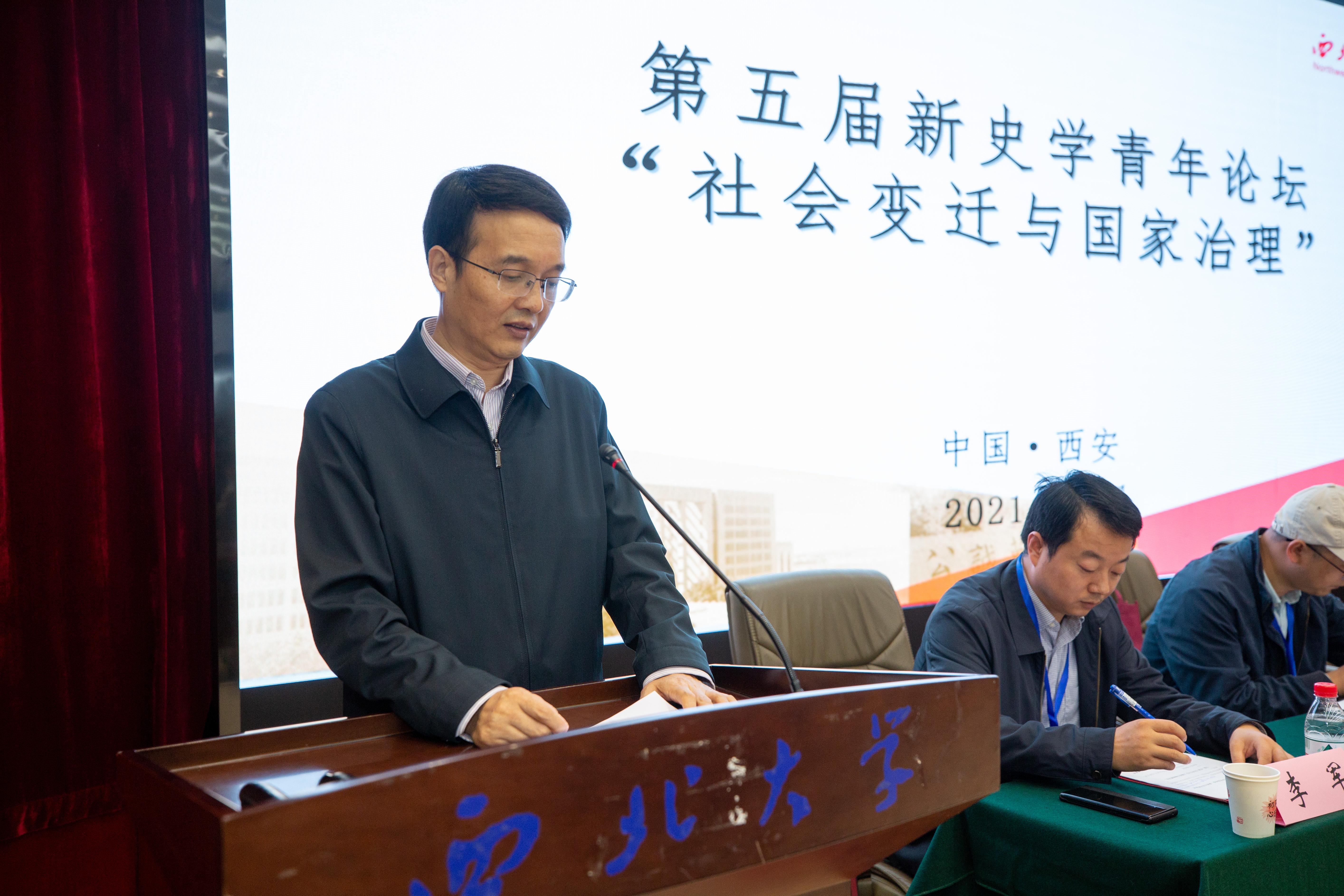 2021年10月9日至10日,由我院、中东所与《史学月刊》编辑部共同举办的“第五届新史学青年论坛:社会变迁与国家治理”在我校太白校区顺利举行。来自北京大学、清华大学、中国社会科学院、复旦大学、南开大学等高校和科研单位的60余位青年学者参加本次论坛。我校党委常委、副校长张远军,《史学月刊》主编苗书梅出席会议并致辞。开幕式由我院院长李军主持。