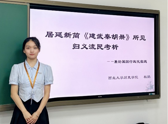 据悉,本届学术研讨会共收到251篇投稿论文,组委会最终遴选出26篇优秀论文。在学术研讨会中,杜鹃同学宣读了题为《居延新简〈建武秦胡册〉所见归义流民考析——兼论属国行政化实践》的学术论文(指导老师:单印飞副教授),中国社会科学院古代史研究所刘源研究员对杜鹃同学的文章给予了好评。最终,该文荣获第三届“绘素雅集”本科生历史学术研讨会论文一等奖。